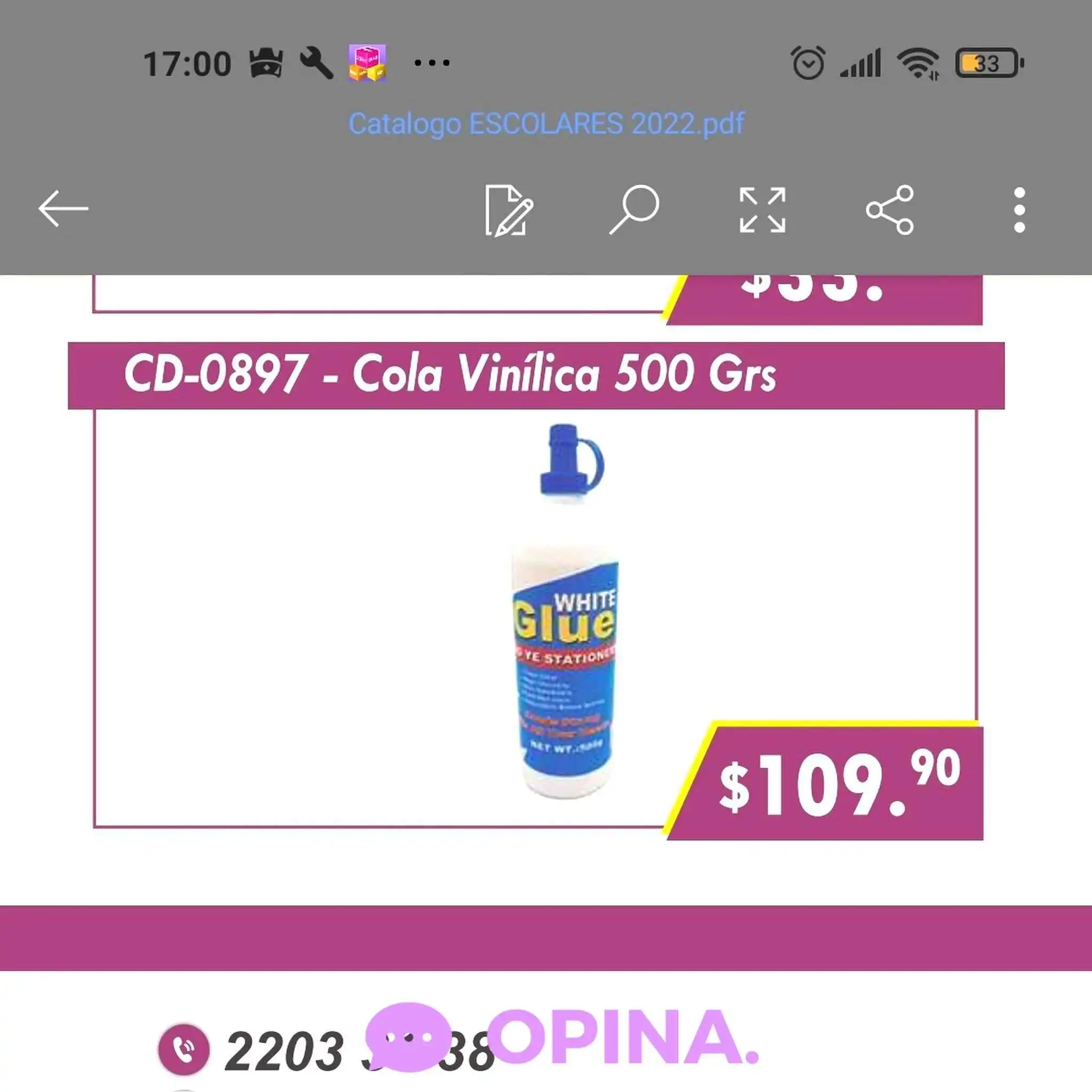 El teléfono de el mencionado Mayorista es 22033138