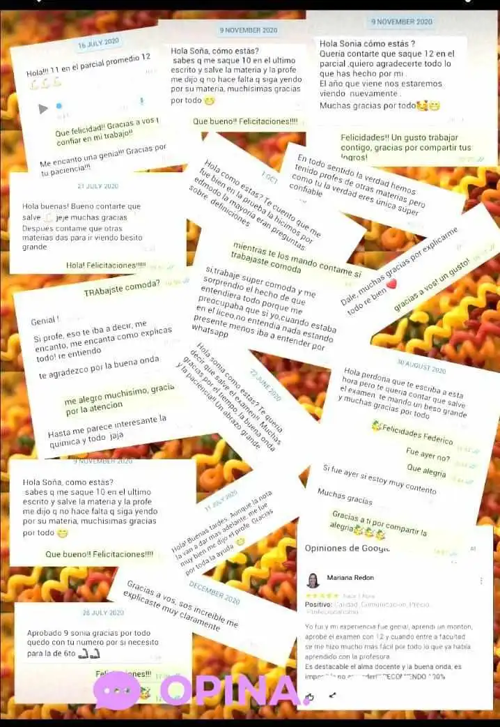 Los comentarios de los estudiantes hablan por sí mismos. Muchos destacan que Sonia es una “profesional destacada” con una capacidad excepcional para explicar los temas complicados de manera sencilla. Un alumno menciona: "Pude entender en 2 clases lo suficiente para sacarme un 9 en el primer parcial de química". Además, otros testimonios señalan la dedicación de Sonia, quien se asegura de que cada alumno comprenda completamente los conceptos antes de avanzar. “Clases súper dinámicas, te diviertes al aprender”, dice otro estudiante satisfecho. Esto no solo crea un ambiente de aprendizaje positivo, sino que también mejora significativamente el rendimiento académico.Conclusión