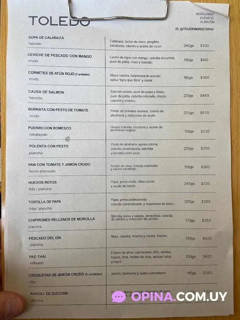 Toledo Bar de Tapas, ubicado en Montevideo, te ofrece la posibilidad de disfrutar de una deliciosa cena en un ambiente agradable y acogedor. Este establecimiento es ideal para grupos, ya que cuenta con opciones de servicio adaptadas a tus necesidades. En Toledo Bar de Tapas podrás encontrar una amplia variedad de bebidas fuertes para acompañar tus comidas, así como aperitivos deliciosos que harán que tu visita sea inolvidable. Además, si prefieres disfrutar de tus tapas en casa, ofrecen la opción de llevar. El lugar acepta pagos con tarjetas de crédito y cuenta con un espacio accesible para personas en silla de ruedas, garantizando la comodidad de todos sus clientes. El ambiente es informal y perfecto para disfrutar de un consumo en el lugar, ya sea durante el almuerzo o la cena. Para aquellos que se preocupan por la accesibilidad, Toledo Bar de Tapas cuenta con estacionamiento gratuito en la calle y entrada accesible para personas en silla de ruedas. Además, el local acepta reservas y ofrece servicios de calidad para asegurar una experiencia satisfactoria. Ven a Toledo Bar de Tapas y descubre todo lo que tiene para ofrecer. ¡Te esperamos para que disfrutes de auténticas tapas en un ambiente único en Montevideo!