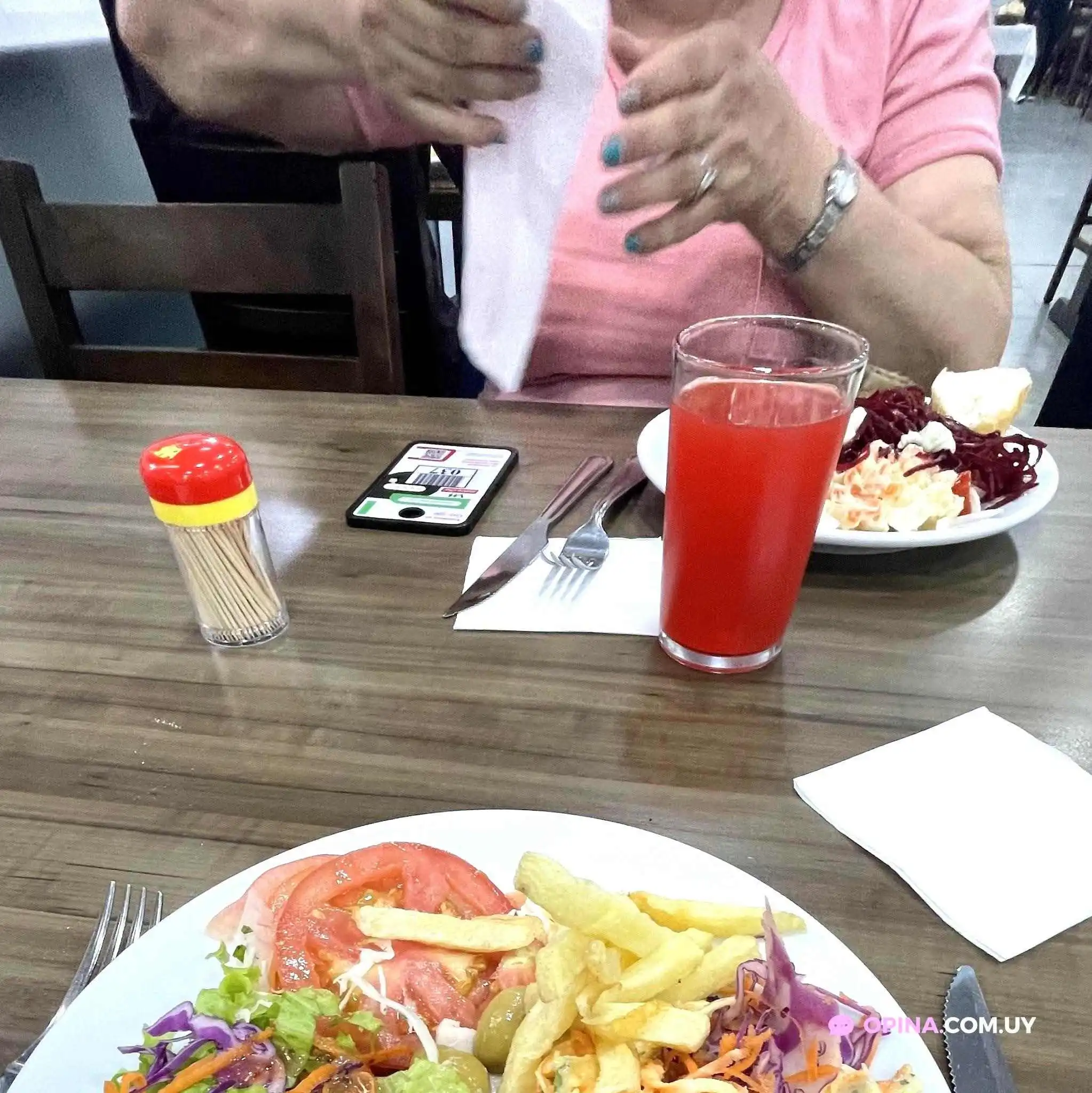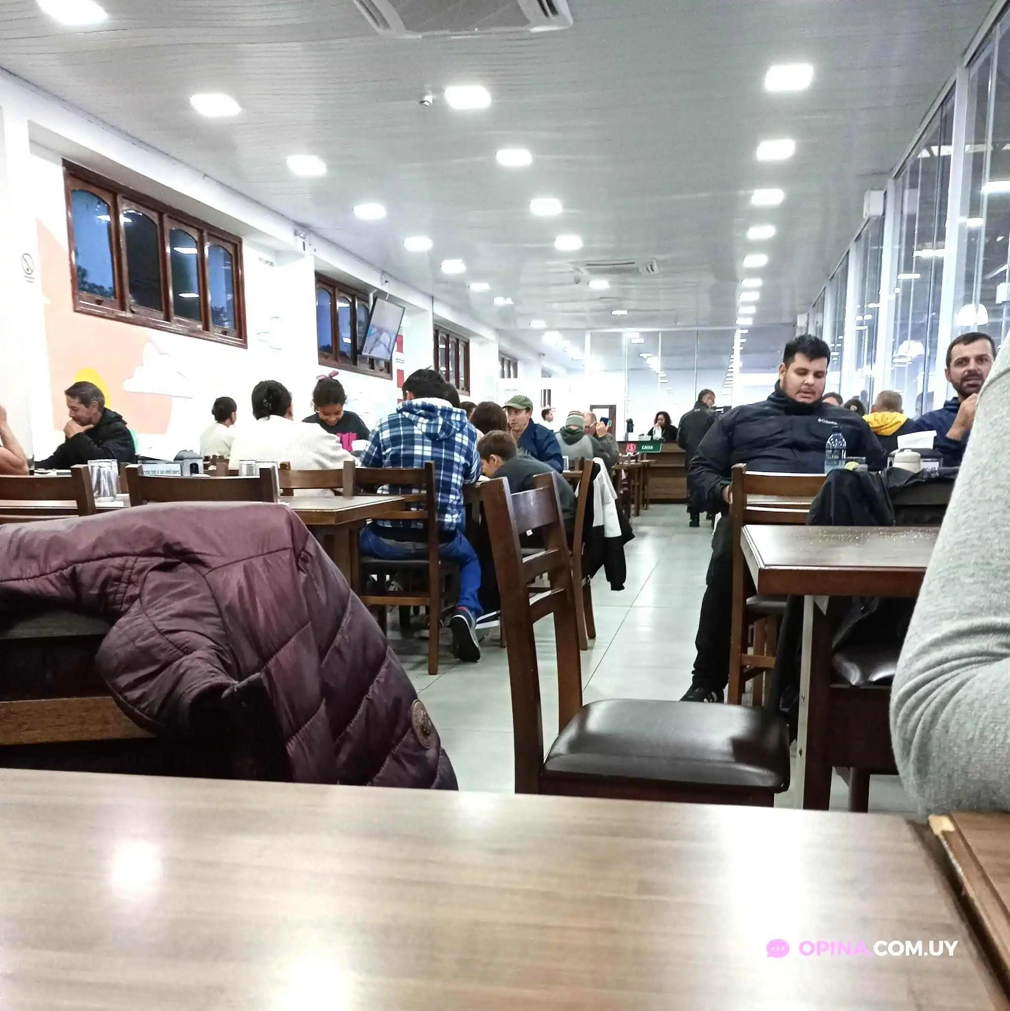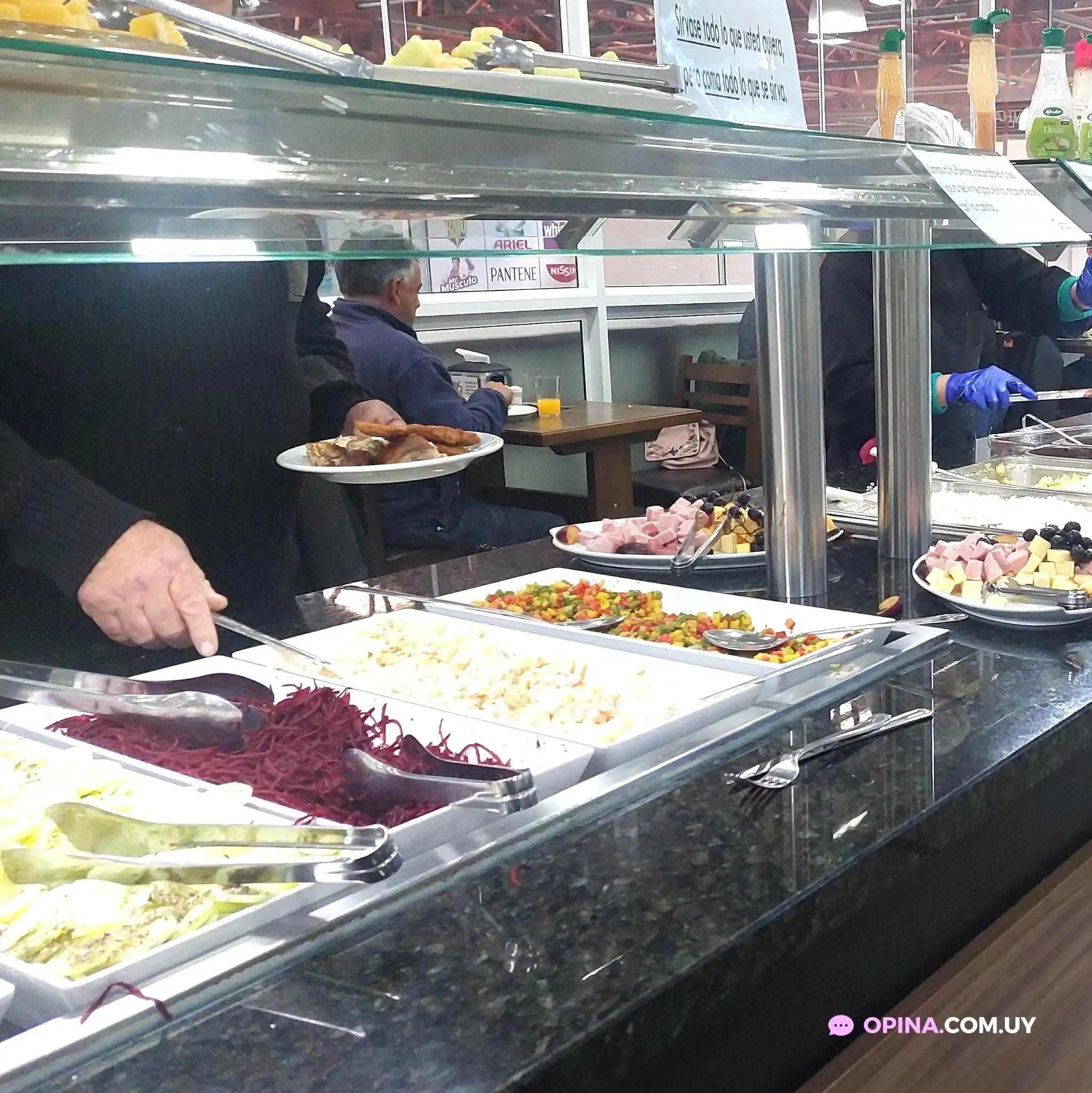 Si tuviera que ponerle 0 estrellas, lo haría sin dudarlo. ¡Una porquería, la comida es un asco! De verdad, hay mucho margen para mejorar, especialmente en la limpieza (las mesas sucias, el piso lleno de grasa al punto de que patinabas) y la calidad de la comida. Nos sentaron en una mesa detrás de un dispensador de jugo que nos salpicaba por todos lados ensuciándonos la ropa. En cuanto a la comida, ¡no hay acompañamiento! Tenés que esperar porque traen muy poco, lo cual alcanza para 3 o 4 personas y la bandeja se termina rápidamente. La carne estaba completamente fría, extremadamente grasosa y la verdad es que no daban muchas ganas de comerla. Es mejor pagar por un plato en un restaurante que esto.