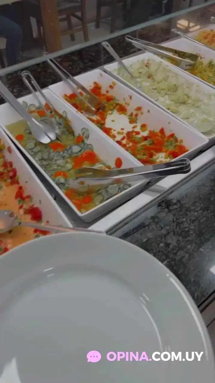 Consultamos por opciones vegetarianas y además de la variedad de ensaladas, papas fritas y puré que tenían, nos ofrecieron hacernos milanesas de berenjena en el momento, un servicio de primera. La comida estaba riquísima, el lugar impecable y los mozos súper atentos. Además, tenían opción de mayonesa vegana, ¡nos pareció espectacular! Por 390$ tenés buffet libre, agua/jugo, postre y café incluido. Una opción buenísima, totalmente recomendable.
