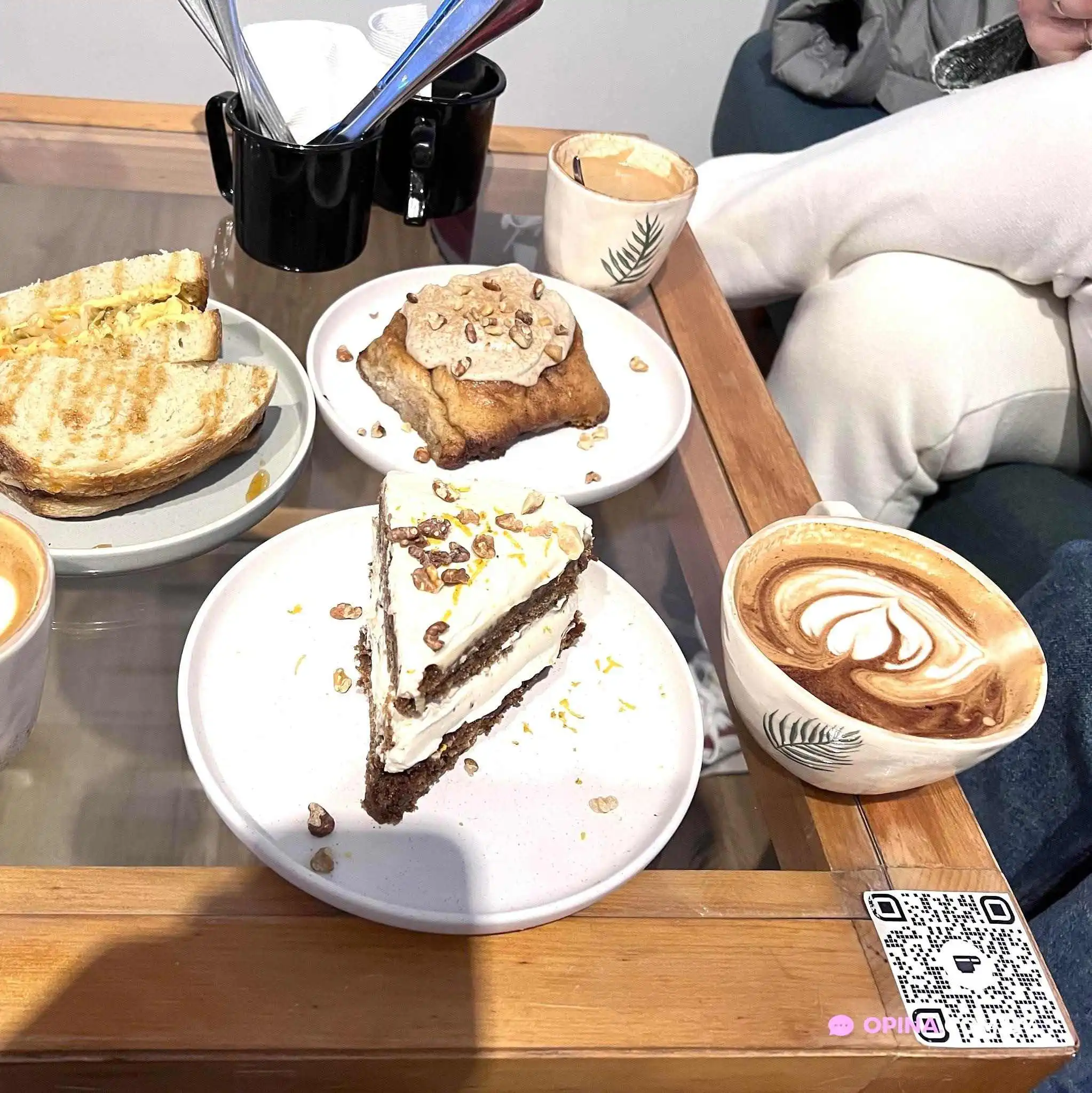 En cuanto a la oferta gastronómica, el menú incluye desde jugosos postres hasta opciones saludables para el almuerzo. El café es uno de los grandes protagonistas del local, siempre preparado con gran atención al detalle.