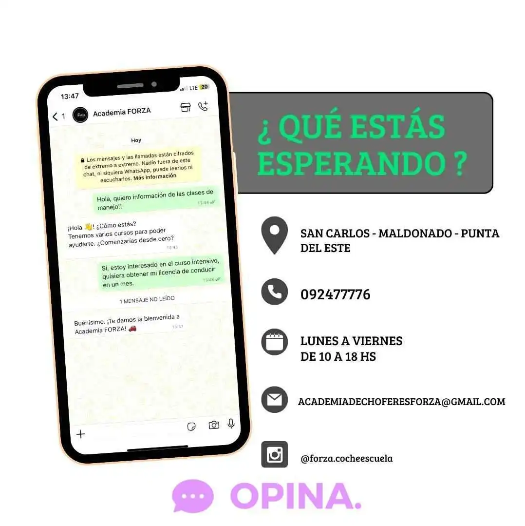 En el corazón de San Carlos, departamento de Maldonado, se encuentra la Academia Forza, un centro de formación dedicado a preparar a futuros conductores con una metodología única y efectiva. Si estás buscando obtener tu carné de conducir en un ambiente profesional y amigable, este es el lugar ideal.Excelente Atención y Dedicación