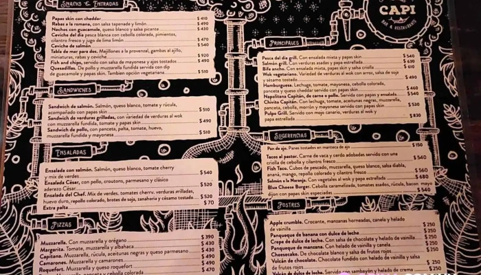 En Capi Bar, los visitantes pueden disfrutar de un menú variado que incluye opciones para todas las edades. Desde menú para niños hasta deliciosos postres, hay algo para cada uno. Además, se permite el consumo en el lugar, lo que la convierte en una excelente opción para una salida familiar o con amigos.Servicios y Accesibilidad
