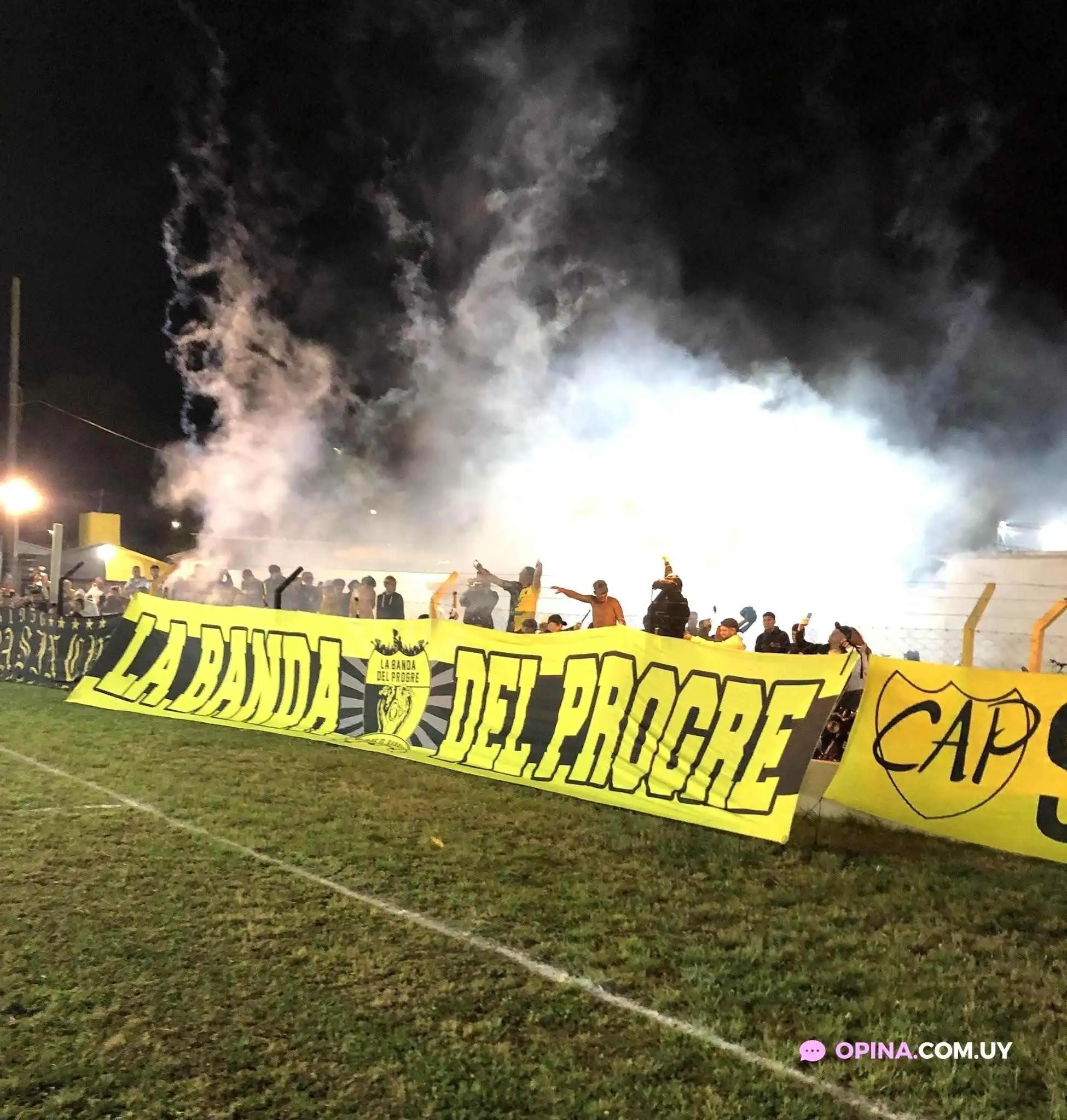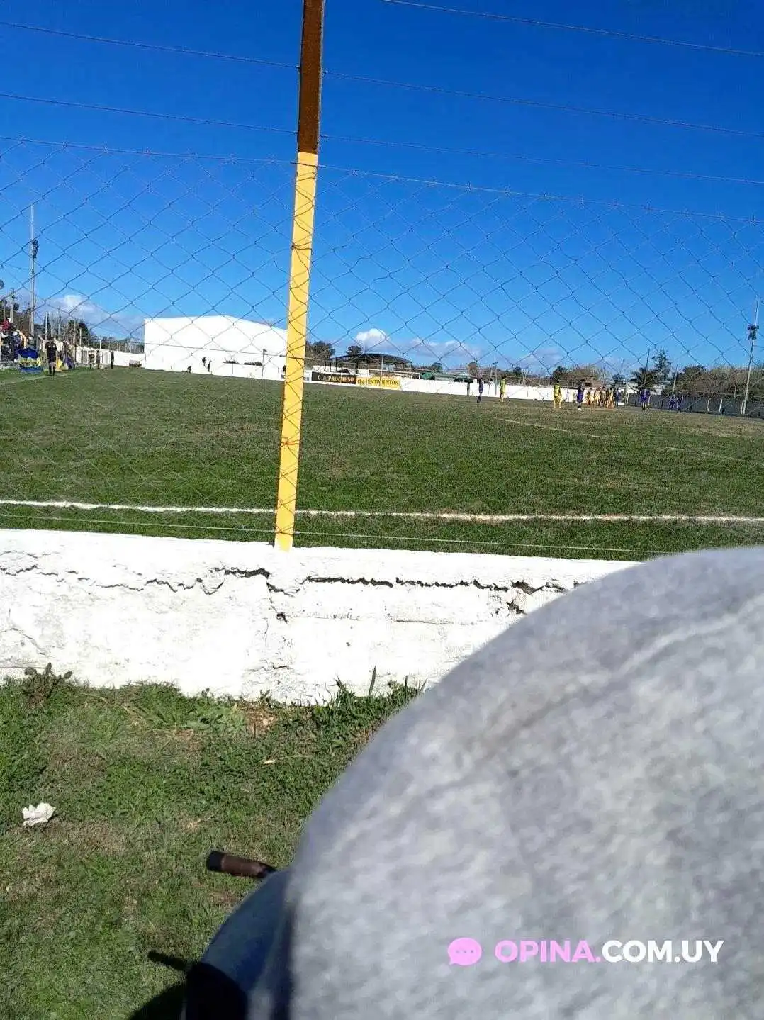 Atlántida al norte. Lindo estadio, che. Un césped de primera, no te digo. Tiene gradas, vestuarios y cabinas pa' los relatores. ¡Qué completo que es este estadio! Mirá que de ese club pensé que iba a ser para los grandes, pero vi que nomás a unas cuadras tienen un campo de baby fútbol. ¡Qué joyita! ¡Aplausos!
