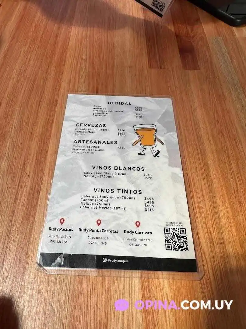 Rudy Burgers ofrece una gran variedad de hamburguesas gourmet, acompañamientos deliciosos, postres irresistibles y bebidas refrescantes.Alcohol