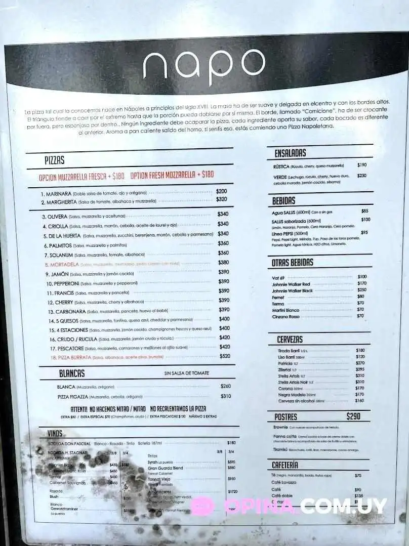 El menú de NAPO incluye una variedad de platos, desde sus famosas pizzas hasta postres irresistibles. La barra de ensaladas también está disponible para aquellos que buscan una opción más ligera. También encontrarás una selección de bebidas fuertes y opciones de alcohol, perfectas para disfrutar con amigos.Facilidades de Pago