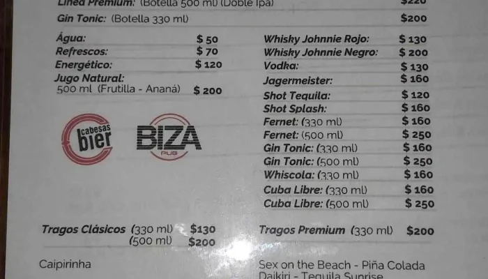 En el Pub Biza, los visitantes pueden disfrutar de buenos cócteles y cerveza de diversas marcas. Adicionalmente, se destacan las bebidas fuertes que son perfectas para aquellos que buscan una experiencia más intensa. El local también se caracteriza por tener asientos al aire libre, lo que permite disfrutar de la brisa y el clima agradable de la región.Servicios y Opciones de Servicio