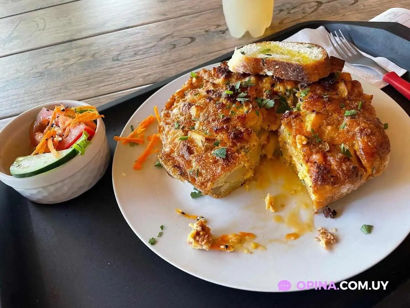 Probé las dos tortillas y estaban muy jugosas, pero me sorprendió que llegaran un poco más cocidas de lo que esperaba.
