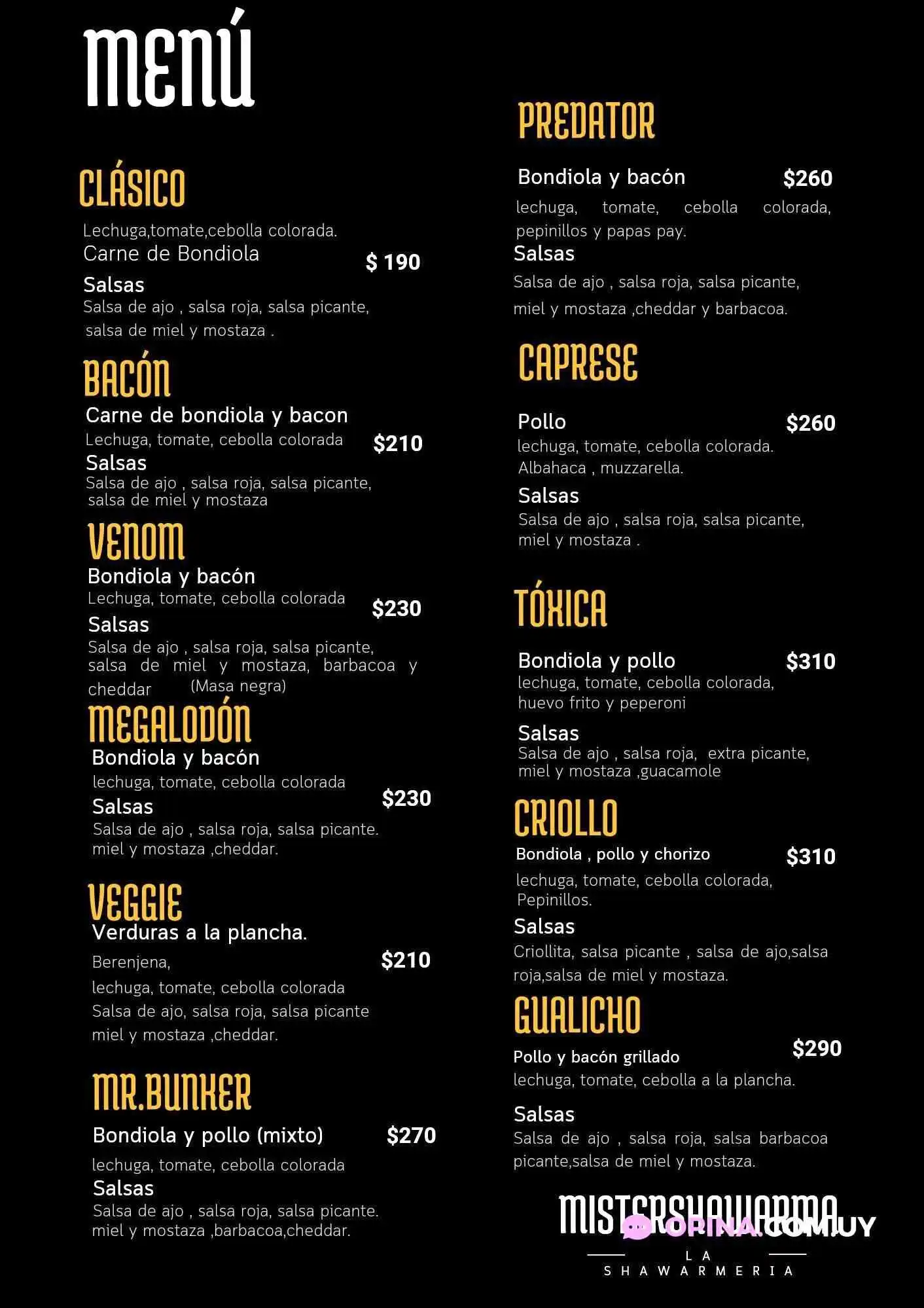 Mister Shawarma acepta tarjetas de débito y tarjetas de crédito, lo que brinda comodidad a la hora de realizar los pagos. Esta flexibilidad le permite a los clientes disfrutar sin preocuparse por el efectivo.Menú para Menores
