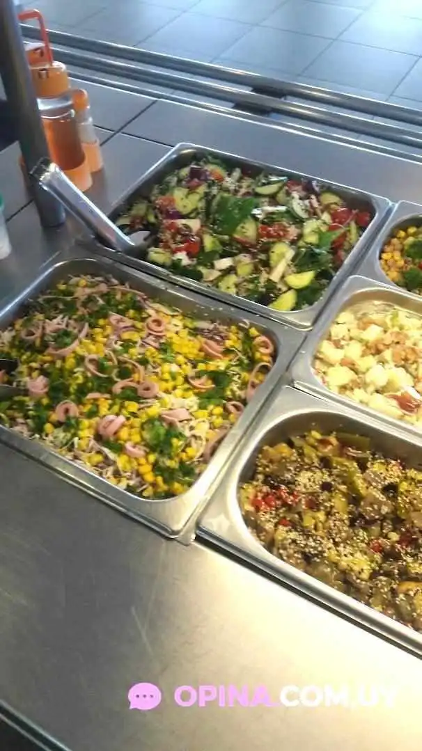 Un lugarcito re barato que ofrece comida del día bien nutritiva, es como buffet, en el menú del día viene incluido, bebida, pan, postre, y 2 ensaladas a elección. La atención siempre re calida y rápida. Se puede pedir salsas también sin costo extra, como mayonesa o ketchup. Muy recomendado, mesas bien anchas y también hay microondas por si alguien quiere llevar su comida y almorzar juntes. Tienen mesas afuera y son re amplias.