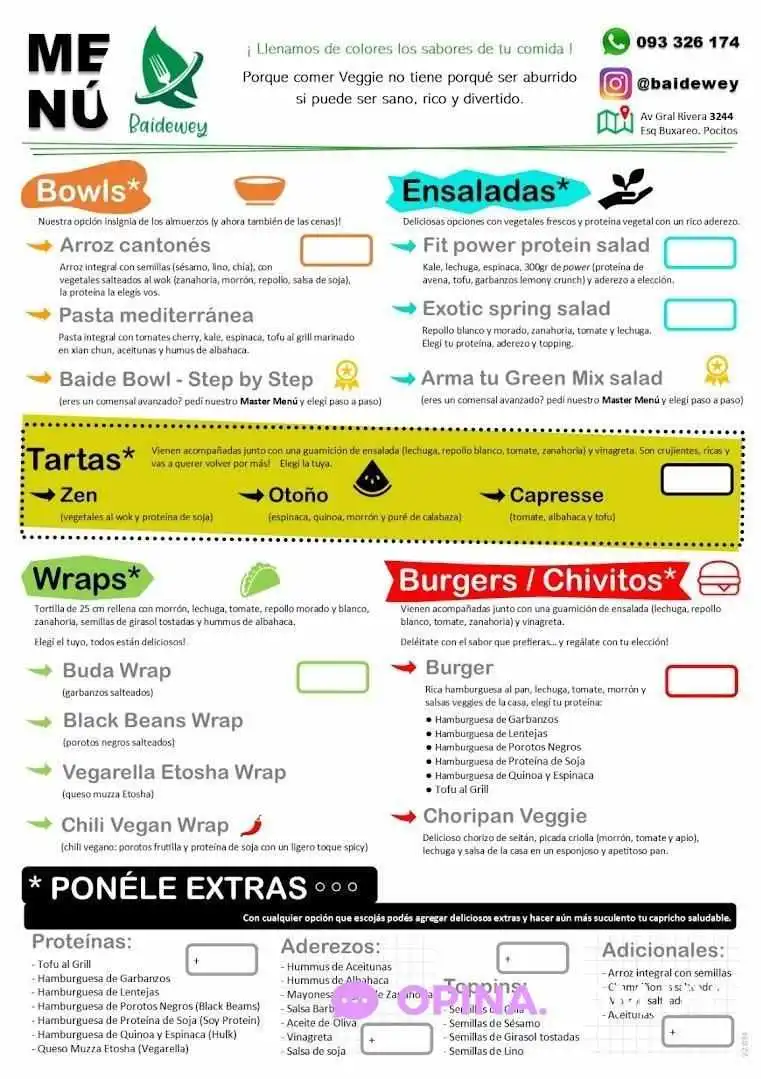 En Baidewey encontrarás una amplia variedad de platos vegetarianos y veganos para disfrutar en un ambiente informal y acogedor. Desde aperitivos hasta postres, nuestro menú está pensado para satisfacer hasta los paladares más exigentes.Opciones de Servicio y Pagos