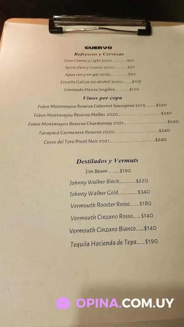 Menú de Restaurante Cuervo